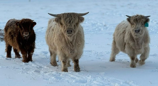 Highlands offered more than just a unique look. They brought together a rare combination of traits—docility and intelligence that make them easy to work with, along with natural hardiness that allows them to thrive in both cold and heat through their double hair coat and distinctive horns. Their forelocks provide natural fly resistance, while their smaller frame supports efficient management. Paired with easy calving, strong maternal instincts, and a striking appearance, they offered everything Randy and Brittaney were looking for in a herd.
